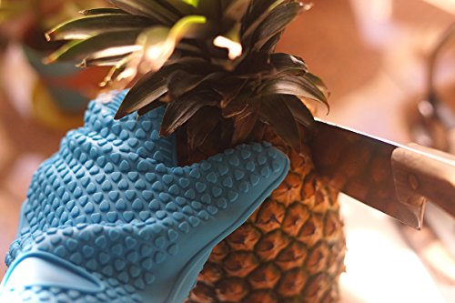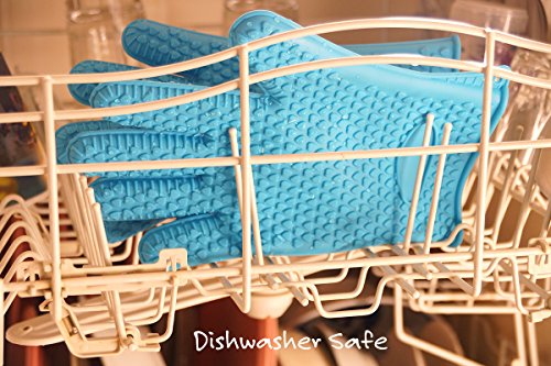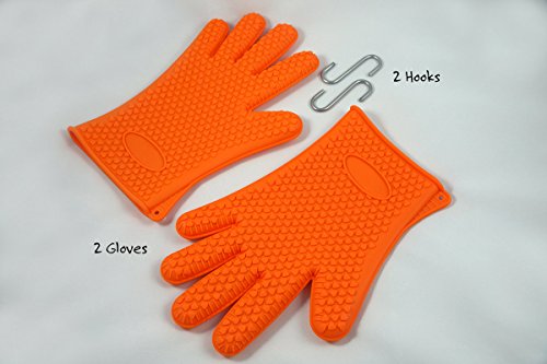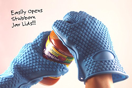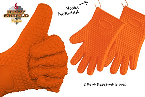 Heat Shield Gloves - Durable Heat Resistant Silicone Oven and Grilling Gloves with FREE Metal Hanging Hooks Included - Directly Handle Hot Foods in the Kitchen and at BBQs - Use it to Easily Open Stubborn Jar Lids - 100% Waterproof - Dishwasher Safe - One