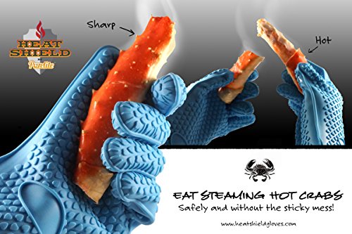 - MANY USES - The Flexible 10 Finger Design allows you to grab any hot foods right off the grill or oven. Perfect for shredding meats, moving roasts and hot grills. Safely grab hot potatoes and eggs right out of the pot with this versatile, waterproof, kitchen necessity. Prepare and handle burning hot crabs, shrimps, crayfish or lobsters right out of the pot and crack their spiny shells in complete safety and without the sticky mess. May also be used as a Pot Holder or Trivet.