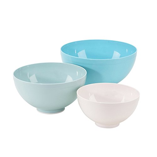 Sweet Creations 3-Piece Mixing Bowl Set, White and Turquoise