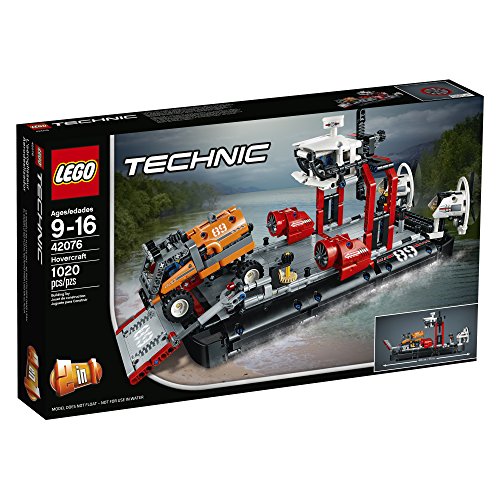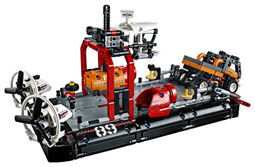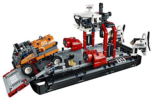 Reach inhospitable areas with the LEGO Technic hovercraft set, featuring a black and white color scheme, working crane with operator’s cab and a raise able loading platform. Maneuver the hovercraft to spin the twin rear fans and operate the working steering to move them left and right. This advanced building set also includes an expedition truck with a detachable cargo container. Rebuild the set to create a jet boat.Feature