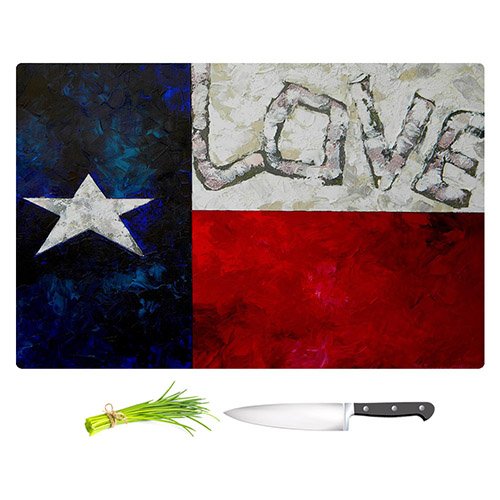DiaNoche Designs CB-PattiSLoveForTexas2 Patti Schermerhorn-Love for Texas Unique Kitchen Slicing Dicing Bar Artistic Decorative Cutting Boards from, Large 15" x 11"