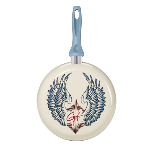 Guy Fieri products incorporate style with unique function built expressly to the specifications of the famous chef and restaurateur. This Decorated Skillet Fry Pan was crafted after Guy Fieri's own Wings tattoo design and will beautify your kitchen. Features a long-lasting, non-stick coating that will give the pan a glazed finish as well as provide for easy cleanup. The silicone soft spray handle provides added comfort. Dishwasher safe, but hand washing recommended. Decorated skillet fry pan with Wings design measures 10 inch diameter.Feature