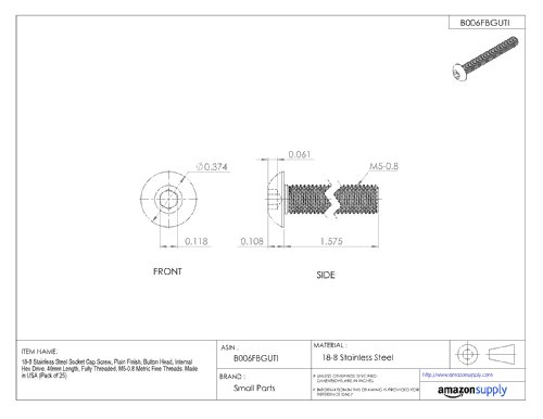 18-8 Stainless Steel Socket Cap Screw, Plain Finish, Button Head, Internal Hex Drive, 40mm Length, Fully Threaded, M5-0.8 Metric Coarse Threads, Made in US (Pack of 25)