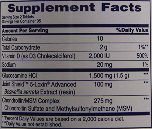 The natural aging process can add excessive stress on your joints. Annoying flare-ups can strike at any time. Add Osteo Bi-Flex Triple Strength with Vitamin D to your joint care regimen. It contains 1,500 mg of Glucosamine, a key building block of cartilage.*5-LOXIN Advanced contains high concentrations of AKBA, which is important for helping with joint flare-ups.*With the addition of our Joint ShieldY Proprietary Blend which contains Chondroitin, MSM and 5-LOXIN Advanced, plus Vitamin D, this revolutionary formula helps revitalize your joints to keep them jumpin'.*The only leading brand with 5-LOXIN Advanced. Starts working to improve joint comfort within 7 days.*Feature