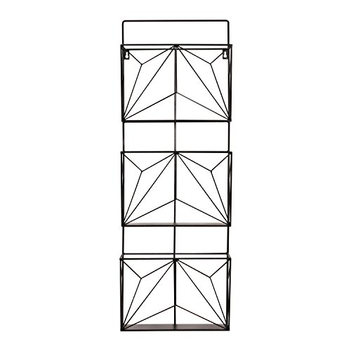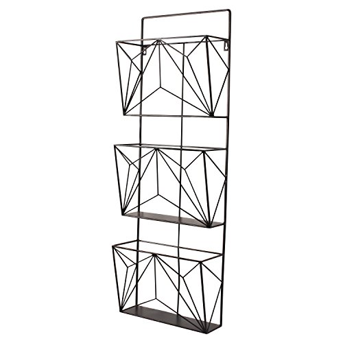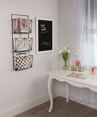 Kate and Laurel Tyde Hanging Wall File Organizer Mail Holder with Three Metal Pockets, Black