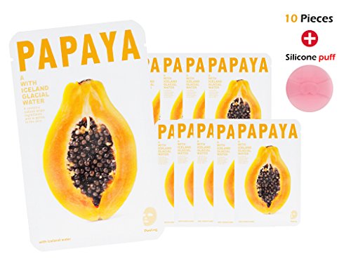 -. Title : [CNF COSMETIC] THE ICELAND PAPAYA MASK SHEET - [10pcs] + SILICONE PUFF