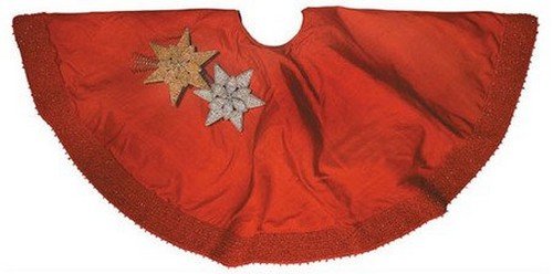 Arcadia Home TS0503R Silk Christmas Tree Skirt with Red Pebble Border , Red