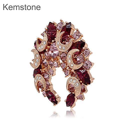 -. Title : Kemstone Elegant Purple Cubic Zirconia Moon Brooch Rose Gold