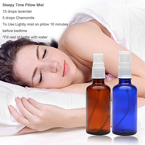 -. Feature : BEST SPRAY BOTTLES: Cobalt Blue, Amber(not cheap or painted) helps protect contents from harmful UV light. High quality, thick and strong boston round bottles with fine mist sprayer tops. / EASY TO USE: Simply fill 2 oz colored spray bottle with water, add essential oils of choice (10 to 25 drops total), shake up, label and start misting. Shake well before each use. Refillable containers. / MAKE IT HOMEMADE: Best for Aromatherapy, Natural Air Fresheners, Cleaning Recipes, Diy Beauty Products, Skin Care Treatment, Home Remedies, Pillow Mist, Room Sprays, Body Spray, Health and Wellness. / BONUS RECIPE GUIDE: Ready to make some aromatherapy & essential oil sprays? Over 50 recipes included in this bonus guide. Making oils a part of everyday life is easy with these spray bottle recipes. / USE WITH ANY OIL BRAND: Whether you use Doterra, Young Living, Mountain Rose Herbs, Aura Cacia, Wyndmere, Now Foods, Edens Garden, Plant Therapy or any other brand, these sprayers are for you.