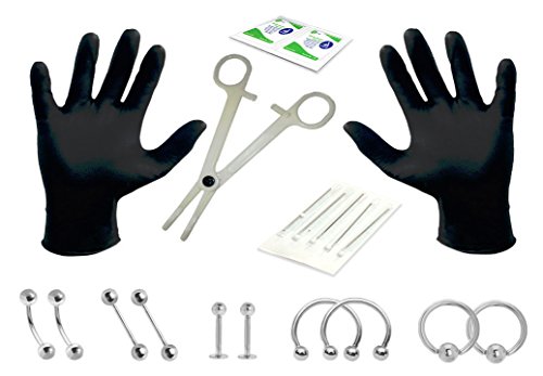 -. Feature : 2 Body Piercing Jewelry Highest Quality, Surgical Stainless Steel. 14G body piercing / 3 Piercing Needles 14 Gauges (100% Sterilized using ethylene oxide (EO) gas.) / 10 Pieces Body Jewelry Start Kit - Piercing Kit / Must be 18 years of age or older to purchase on all piercing kit. / Professional Body Piercing Kit.