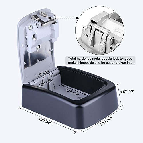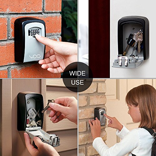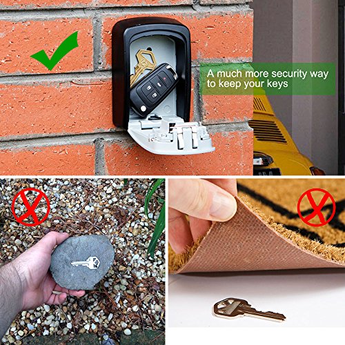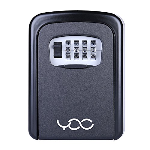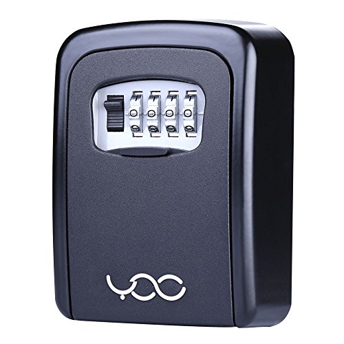 YDO Key Storage Lock Box Secure 4 Digit Combination Case Wall Mounted Organizer (Black)