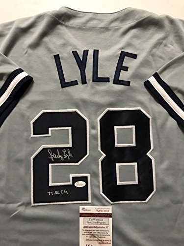 Autographed/Signed Sparky Lyle "77 AL CY" New York Yankees Grey Baseball Jersey JSA COA