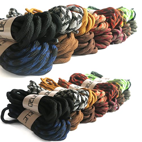 | DELELE 2 Pair Round Wave Shape Non Slip Heavy Duty and Durable Outdoor Climbing Shoelaces Hikin... |