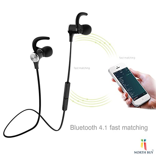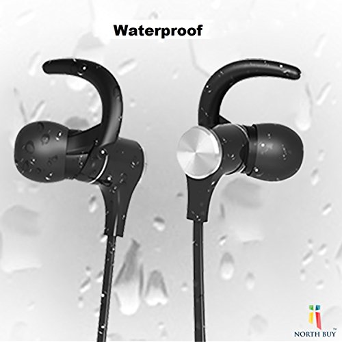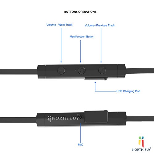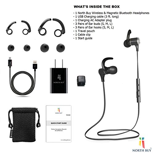 North Buy Bluetooth Magnetic Headphones, Wireless Necklace Style, In-Ear Cordless Stereo Headset, Built-in Mic, Digital Noise Cancelling, Water and Sweat Proof, with Travel Adapter and Accessories