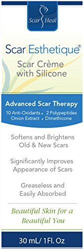-. Feature : Scar Esthetique Scar Crème contains 23 active ingredients including 10 anti-oxidants, 2 polypeptides, liquid silicone and natural botanicals to improve scar cosmesis. / Studies have shown that applying a topical crème as an adjunct to silicone sheeting (Scar Fx) further improved the appearance of scars. / Ideal for application to Keloid Scars, Hypertrophic Scars, Surgical Scars, Traumatic Scars, Burns / Postiive Testimonials for Scar up to 16 years old / Recommended by Physicians and Therapists