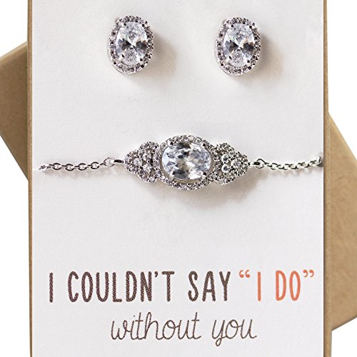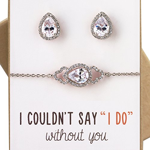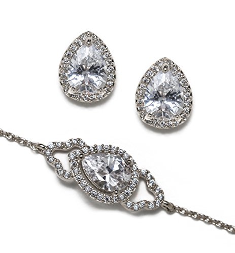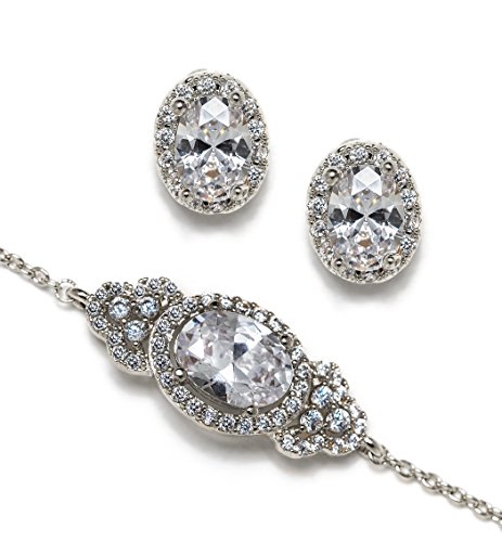 -. Feature : White Gold, Cubic Zirconia Crystals, SP.R.Ing Clasp / Bracelet Chain Length 6 in & 2 in extension; Crystal L 0.75 in x W 0.4 in / Post Earrings Height 0.4 in | Hypoallergenic, Lead & Nickel Free, Proudly made in the U.S. / Included: Set of 1 - Card message, gift box, ribbon. Perfect for gift giving! / Great for special occasions: Bridesmaid Wedding/bridal jewelry gift, bridal shower, Mother of the Bride gift, Mother of the Groom gift, Maid of honor