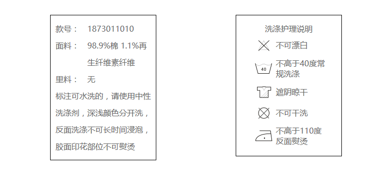 98.9%棉 1.1%再生纤维素纤维