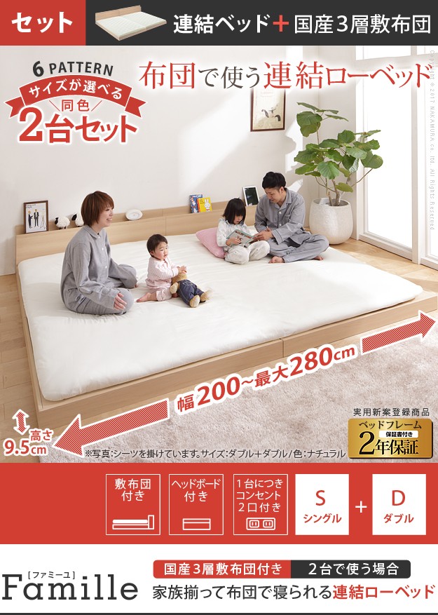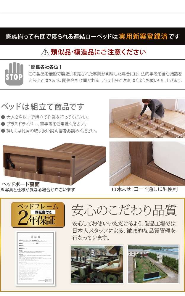 ●連結ベッド ベッドフレーム ロースタイル スリムヘッドボード 2口コンセント 敷布団 敷きふとん 抗菌 防臭 防ダニ布団 防ダニ加工 吸汗速乾 軽い 軽量 厚い 日本製