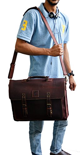 -. Binding : Electronics -. Brand : jaald -. Color : Dark Brown -. EAN : 0796520511736 -. Feature : buy the Laptop bag Only from A Jaald Store for original quality product. The Leather messenger crossbody laptop case for men is made of 100% genuine oil-pull up cow leather / The computer bag for men has Dimensions: 13 X 18 X 4 (height , width, depth) . Has an outer pocket that can fit about an ipad and other useful stuff easily, even a small laptop easily. / This Large laptop case for men & Women has 1 Big compartment good for large laptops , files etc. Has a zippered pocket inside the bag and two pockets to hold misc. / This messenger bag has an adjustable strap with shoulder pad for comfortable carry. Has a handle on top for convenience / This briefcase can accommodate laptops upto 15.6 - 17.3". The inside has nice cotton mix lining that won't scratch your laptop. -. Label : Jaald -. Manufacturer : Jaald -. Model : 18BPC -. ProductGroup : PC Accessory -. ProductTypeName : CARRYING_CASE_OR_BAG -. Publisher : Jaald -. Size : Large -. Studio : Jaald -. Title : 18" Large dark Leather bag for men messenger bag shoulder bag mens Laptop Bag office bag cross body bag -. UPC : 796520511736