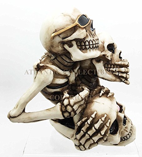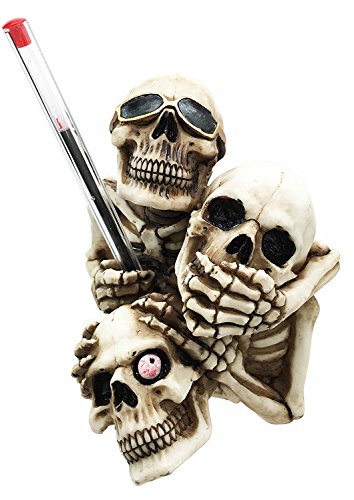 See Hear Speak No Evil Stacked Up Funny Skeletons Skull Figurine Pen Holder Wise Skeletons