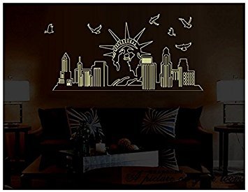 ufengke® New York Cityscapes Statue of Liberty Wall Decals Fluorescence Stickers Glow In The Dark, Living Room Bedroom Removable Wall Stickers Murals