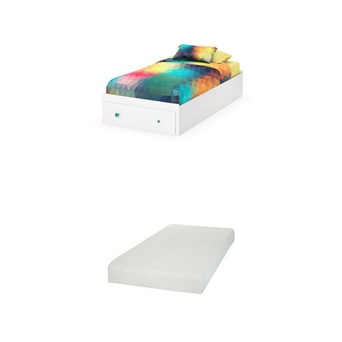 (South Shore)/Kids' Furniture Room Decor/Bed Frames, Headboards Footboards/DIRECT FROM USA/South Shore Little Monsters Twin Mates Bed (39") with 1 Drawer, Pure White, and Somea Twin Matt...