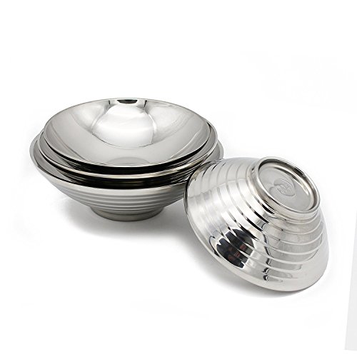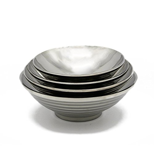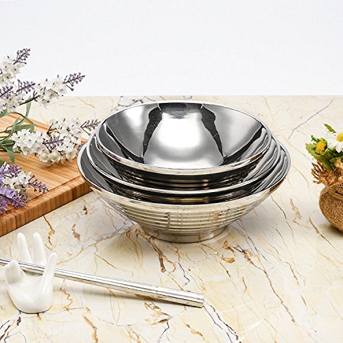 - COMMERCIAL HEAVY GRADE METAL STAINLESS STEEL 304 - Only the highest grade stainless steel is used so you can rest assured knowing these bowls will never rust and are dent resistant. Stainless makes a great cooking and mixingbowl material because it won’t retain odors or stains, and it doesn’t leach harmful chemicals. Our cookware is deeper than standard bowl sets allowing for larger servings and less mess. four smart looking bowls offer the individual flexibility from food prep to the table.