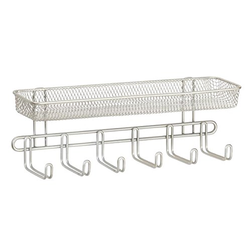 - Accessory organizer with 6 hooks and top basket