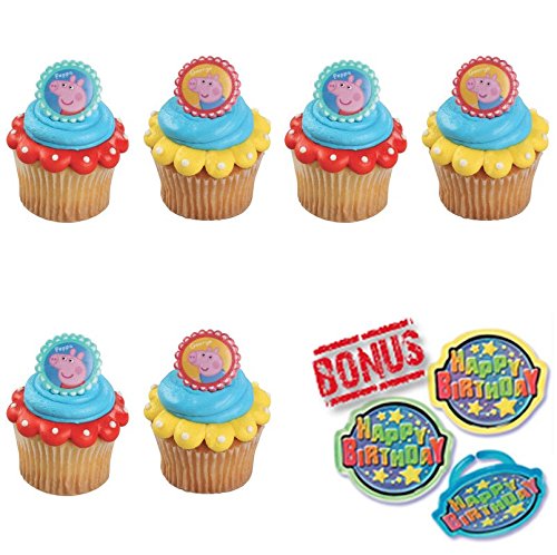 Peppa Pig Peppa and George Cupcake Toppers and Bonus Birthday Ring - 25 pieces
