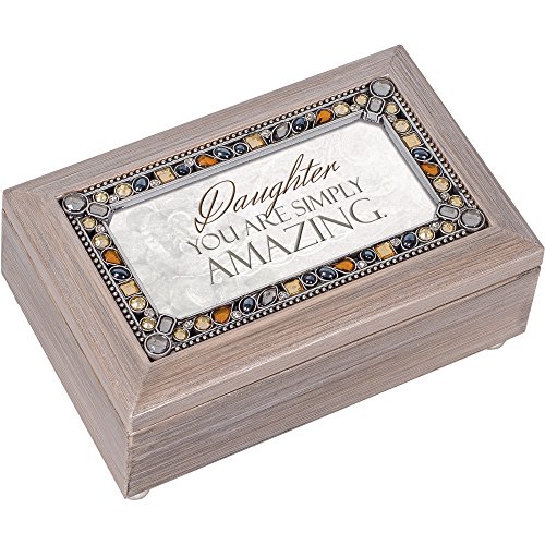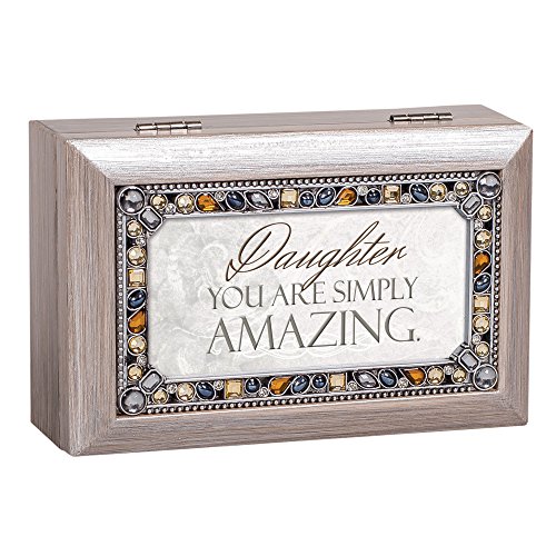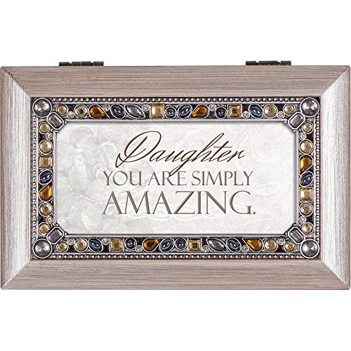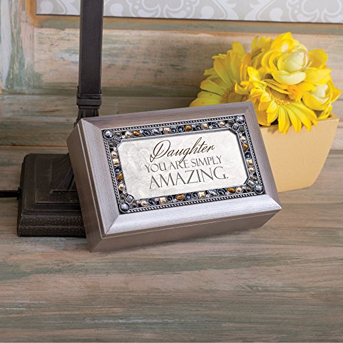 Daughter You are Simply Amazing Brushed Pewter Finish Petite Jeweled Music Box Plays Wind Beneath My Wings