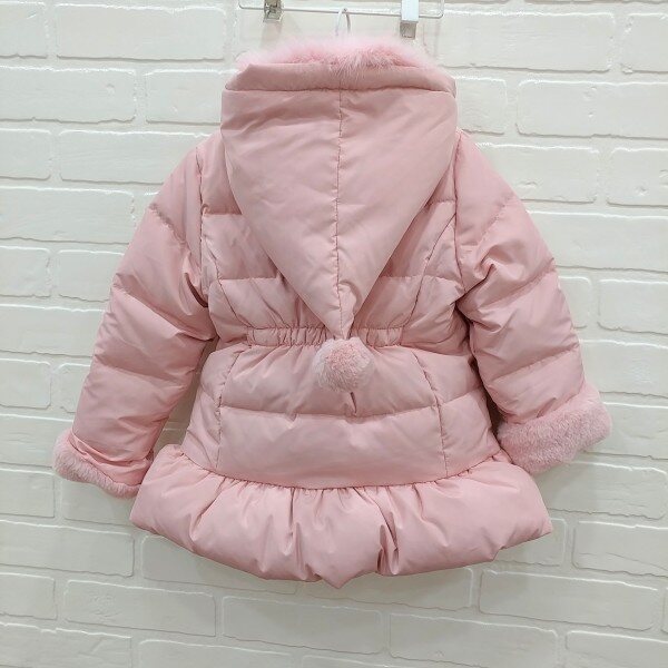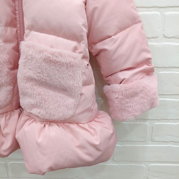 부드러운 터치감의 소재를 사용한 러블리한 스타일의 여아 다운점퍼로 따뜻한 퍼안감과 가벼운 오리털 충전재를 사용하요보온성을 높인 스타일입니다. (모자털 탈부착가능)