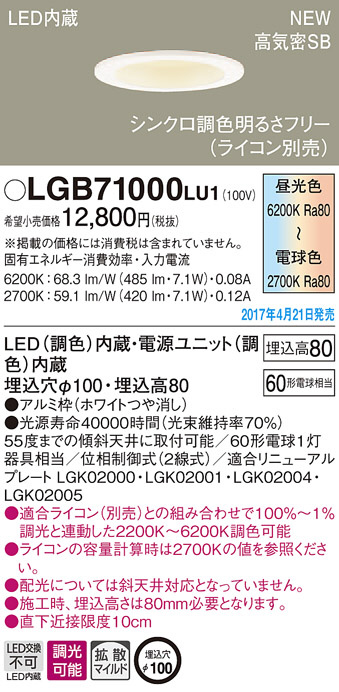 ●寸法(mm):埋込穴φ100・埋込高80
