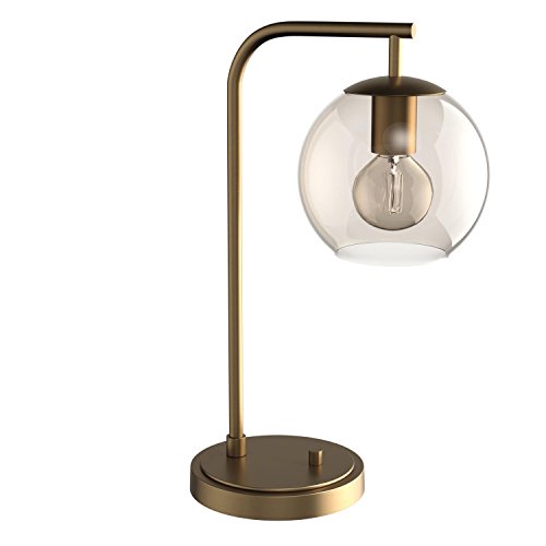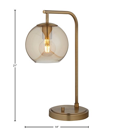 An Amazon brand - Mid-century inspired, this brushed antique brass table lamp adds just the right retro flair to your modern or eclectic décor. Create ambiance as warm light from the Edison bulb shines through the amber-tinted glass globe shade.Feature