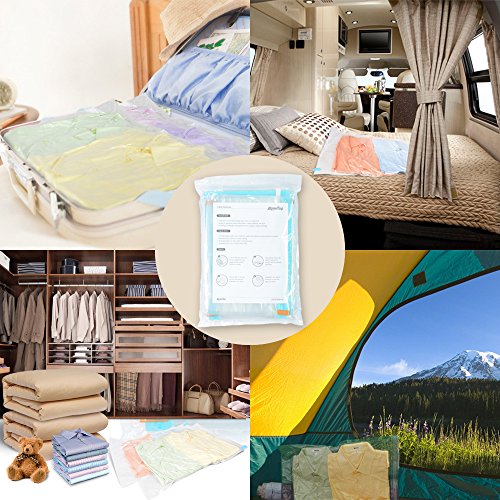 GREAT TRAVELLING COMPANION: It can not only save valuable space in your suitcase but it also protects valuables from insects, dust, and moisture. You can bring your favorite pillow and blanket on your journey. It is also a great solution for dirty and moistened clothes. You can separate them from your clean and dry clothes by using these airtight and waterproof space saving compression bags.