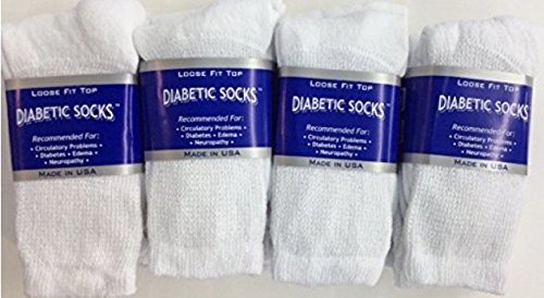 Studio : CRESWELL SOCKS MILLS CSM Publisher : CRESWELL SOCKS MILLS CSM Binding : Health and Beauty Product Description Fabric: 85 percent cotton, 15 percent polyester, 1/2 percent elastic. Tops easily stretch over ankles and bounce back into shape. loose fitting tops stretch over ankle for ease of dressing. Tops bounce back for a comfort fit without binding the leg. Allows for better blood circulation, so important for diabetics and people with circulatory problems or neuropathy. Note: for people with such severe edema that shoes are uncomfortable , buyer may find that the next size up might be indicated. (available in other listings in sock size 9-11 and 13-15)sock size 10-13, typically fits shoe sizes men 7 - 11 economical - keep your loved one supplied with diabetic socks at a low price. For best fit, order the sock size that you usually buy at the store. Made in the USA. 0
