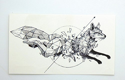 Set of 2 Waterproof Temporary Fake Tattoo Stickers Sexy Cool Black Grey Geometric Fox Animals