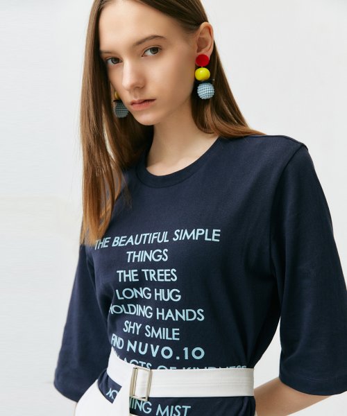 누보텐이 사랑하는 것들을 하나하나 적어 넣은 그래픽의 크루넥 코튼 티셔츠입니다.