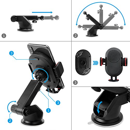 -. Feature : ❤【WIRELESS CAR CHARGING】❤: The car wireless charger is available for Samsung Galaxy S9, S9+, S8, S8+/S8 Plus, S7, S7 Edge, Note5, Note7, S6 Edge Plus, iPhone8, iPhone8 Plus, iPhone X and all devices that support wireless charging. / ❤【FAST CHARGING TECHNOLOGY】❤: for about 1.5x faster than other wireless chargers. A unique feature of DBnice Qi car charger is the two modes of wireless charging. The first mode is the fast wireless charging mode, which would output a maximum of 10W for Galaxy S9 S8 etc.. The second mode is the Standard wireless charging mode, which outputs a maximum of 5W for iphone 8/8plus/X. / ❤【3-IN-1 MOUNT】❤: DBnice portable wireless charger comes with an air vent mount as well as a suction mount. So you can either go for the air vents of your air conditioner or choose the suction mount to fix the wireless charging car mount on your dashboard/ windshield, you can fix this portable wireless car charger anywhere, you prefer in your car. The 360-degree rotating ball joints support landscape and portrait orientations. / ❤【MULTIFUNCTIONAL USE】❤: DBnice Wireless mount car charger can be used not only for car vent installations, but also be used for office, home, dashboard or any place you want to use. / ❤【SECURELY and EASY TO SETUP】❤: This charger is affordable, practical and easy to use. The holder has rubber cushions on the inside, hold your phone securely to protect your phone from getting scratches!