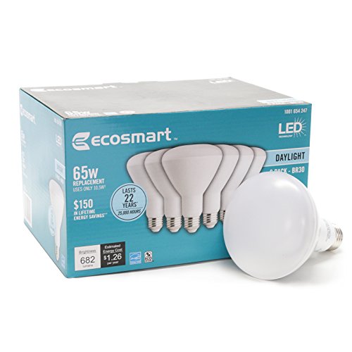 (6-Pack) EcoSmart 65W Replacement (10.5W) LED BR30 Dimmable Daylight (5000K) Medium Base (E26) Energy Star Rated Reflector Lamp for Recessed Can Lights