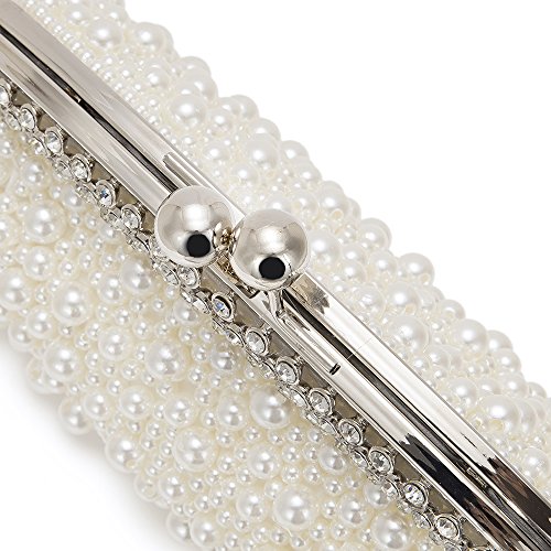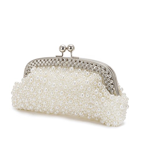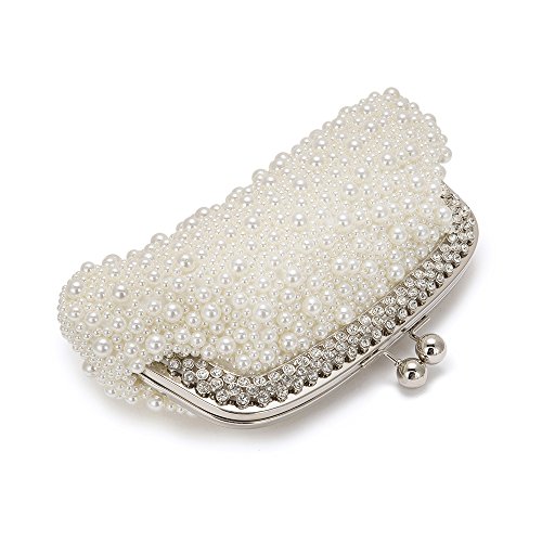 -. Title : Evening Bag Fashion Pearl Beaded Evening Clutch white Diamond handbags with chain Wedding Bag