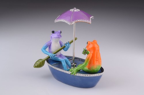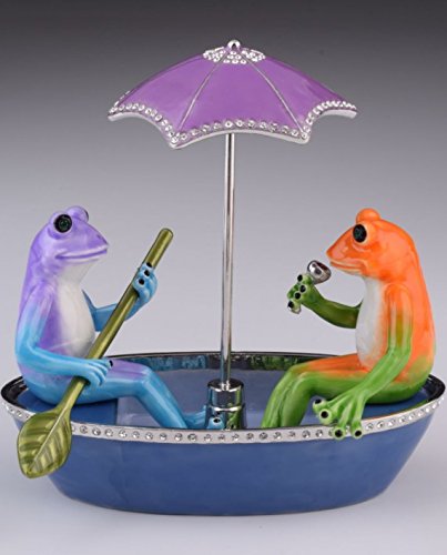 Two Frogs in a Boat Faberge Styled Trinket Box by Keren Kopal Home Decor Decorative Box