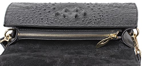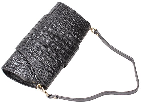 Iblue Croco Embossed Leather Clutch Crossbody Bag Party Purse Wallet 12in #W062 (L, black)