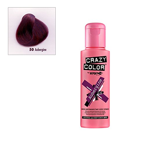 Crazy Color Semi Permanent Hair Color Cream Aubergine No.50 100ml , 4 Count