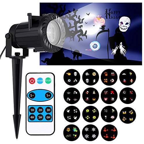 Halloween Projector Light,Eletek 15 Pattern Slides IP65 Waterproof Landscape Motion Projector with RF Remote Control, Outdoor and Indoor Landscape Light for Halloween Xmas Holiday Party Decoration