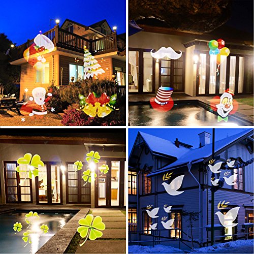 [Wide Application]: Decorative Light Show Projector for every season and occasion, glows to your Home, Wall, Landscapes, Trees, Pond, Pool, Garden, Yard, Driveway, Patio or Flowerbeds. It can be used for clubs, KTV, bar, banquet, shopping mall, weddings, family parties, etc. For Festival Decoration: Valentine's Day, Thanksgiving Day, Xmas, New Year and so on, creating a festival atmosphere all year-round. Great Halloween and Christmas gift!