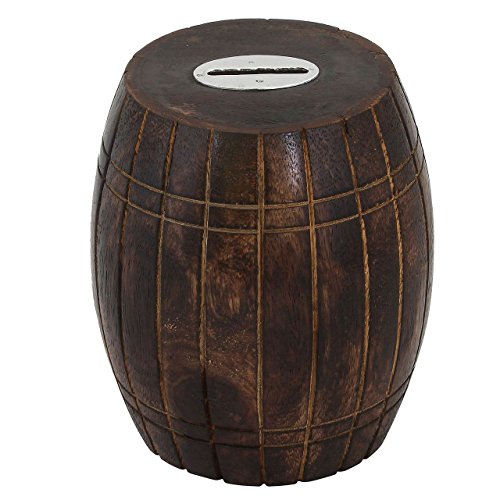 Craft Art India Handcrafted Wooden Money Bank /Piggy Bank / Coin Box in Barrel Shape CAIHD0323A