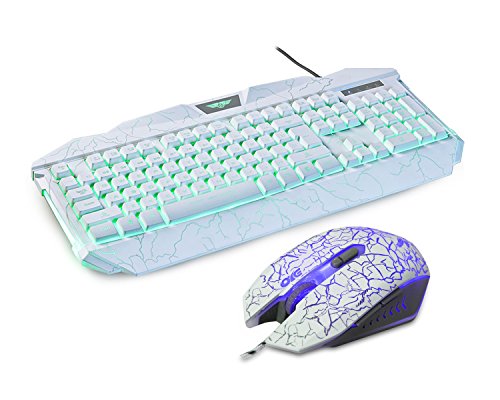 - Title : LED Keyboard and Mouse Combo-BlueFinger® USB Wired Adjustable 3Color Illuminated Backlit Gaming Keyboard and 4Color Crack Voiceless Gaming Mouse White+BlueFinger® Customized MousePad