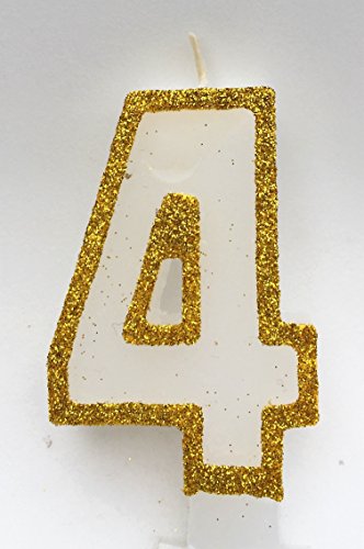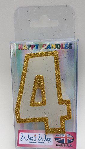 Wasiwax Number (4) Birthday Candle - GOLD GLITTER - Browse our store and choose other numbers