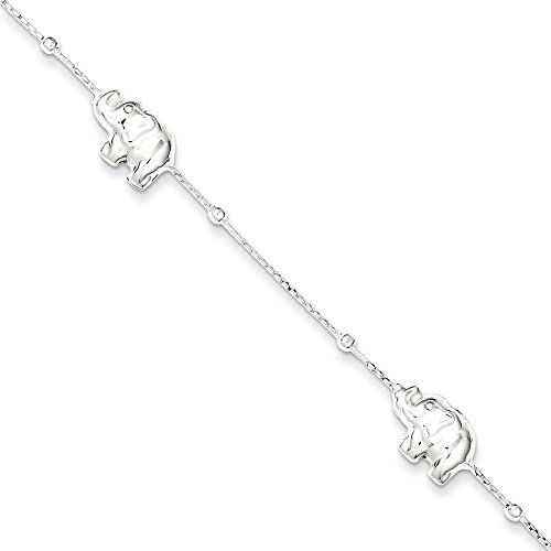 -. Title : Sterling Silver Polished Elephant With 2inch Ext. Anklet - 9 Inch