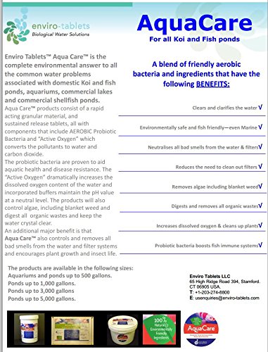[Product Information]- Cleans and clarifies water in Aquariums and Ponds up to 500 gallons. Safe for domestic Koi and fish ponds, commercial lakes and commercial shellfish ponds.